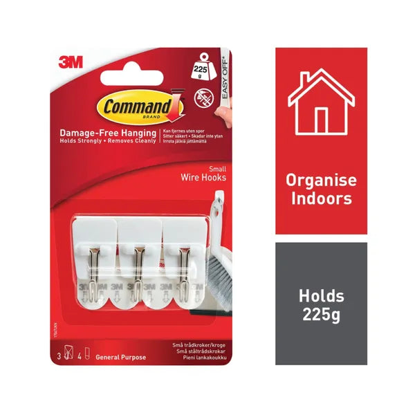 Transform your wall space into an organized, damage-free zone with Command Small Wire Hooks. Perfect for displaying keys, utensils, calendars and lightweight accessories, these innovative hooks grip securely while removing cleanly thanks to 3M's proven stretch-release technology. No drilling, no nails, no wall damage—just instant organization. Each pack delivers 3 ready-to-use hooks with pre-attached adhesive strips, making setup effortless. Discover the smart way to maximize your space without compromise.