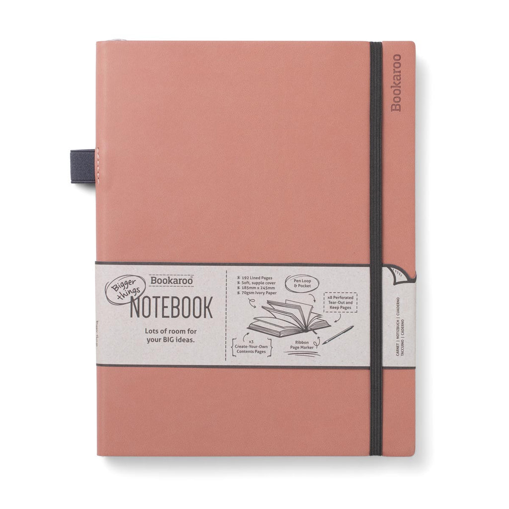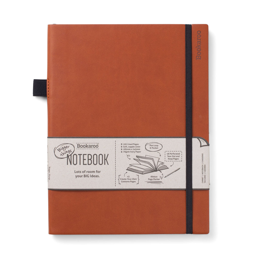 Ready to capture your grandest ideas? The Bookaroo® Bigger Things Notebook Journal gives you the space to dream without limits. Its substantial 19 x 25cm format feels comfortable to hold and carry, while ruled pages provide gentle structure for your thoughts—follow them or ignore them entirely. The supple faux leather cover is a pleasure to touch, and practical additions like a full-sized back pocket and conveniently positioned pen loop keep your essentials within reach. Perfect for launching ventures, writing that novel, pursuing further study, or simply giving your ambitions room to breathe. Think bigger. Write bolder.
