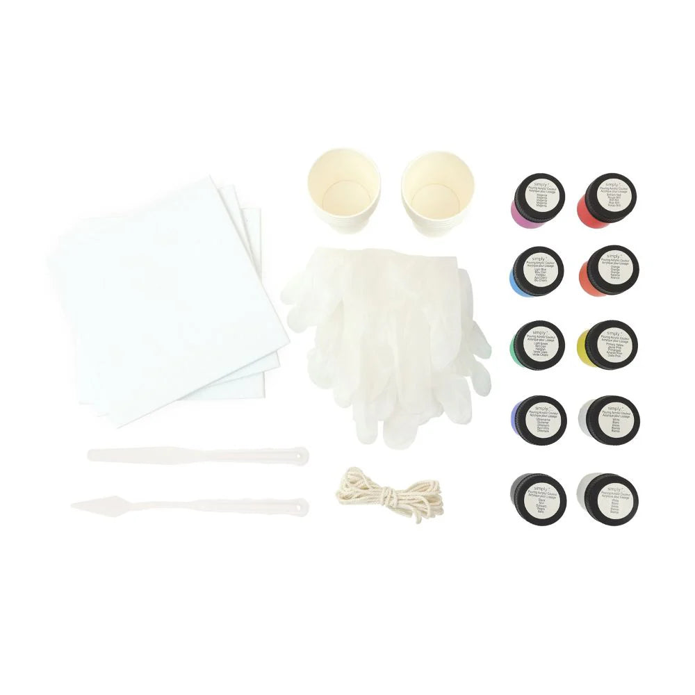 Discover the mesmerising art of fluid pouring with this all-inclusive Daler-Rowney Simply set. Designed for curious creators and gift-givers alike, this project-based collection contains everything needed to produce stunning poured paintings—premixed acrylic paints formulated specifically for pouring techniques, plus generous quantities to continue experimenting beyond the initial projects. Three detailed step-by-step guides walk you through each project, whilst complementary online video tutorials provide visual instruction and inspiration. Whether you're a complete beginner or exploring a new artistic medium, this set removes the guesswork and lets you focus on creating beautiful, unique pieces. Daler-Rowney Simply combines exceptional value with reliable quality, making it the perfect choice for anyone ready to embrace fluid art or seeking a thoughtful, creative gift that inspires immediate results.