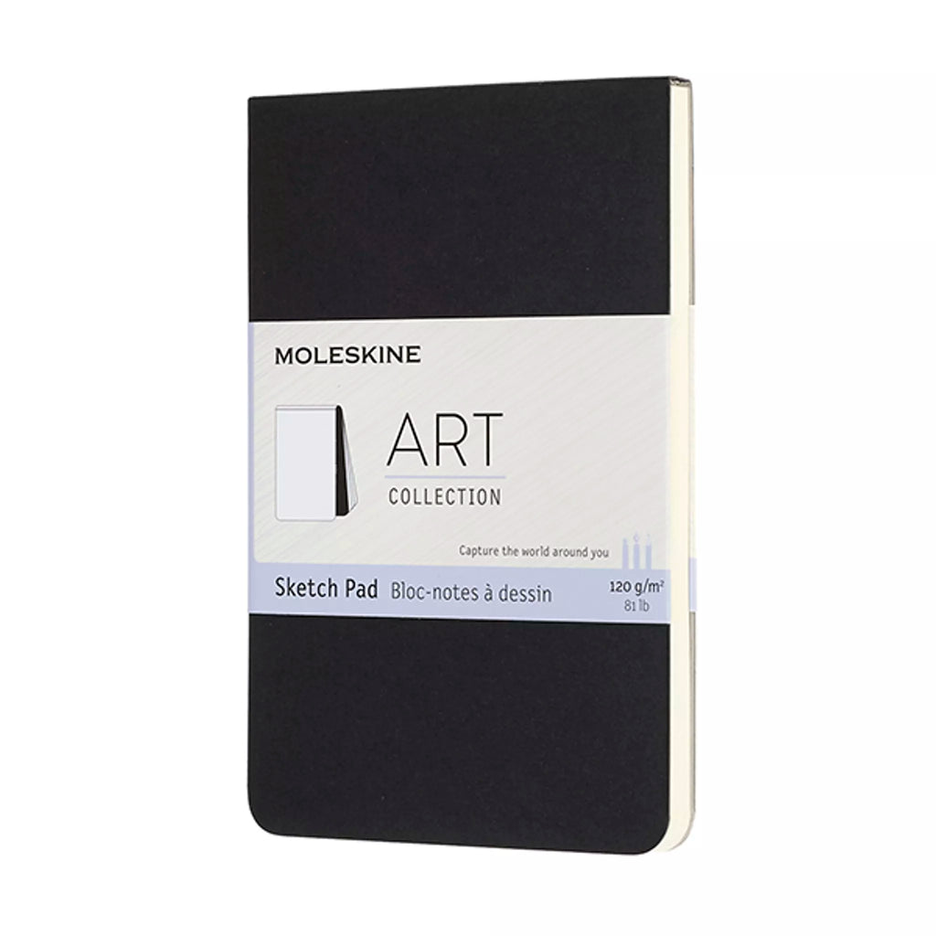 The Moleskine Art Pocket Black Sketch Pad features 48 removable pages and a sturdy cardboard cover with rounded edges. Its ivory 120gsm acid-free paper provides an ideal surface for traditional sketching and drawing. This smooth, high-quality paper supports Moleskine Drawing Pencils, charcoal, pens, fountain pens, and markers, ensuring your artwork comes to life with ease and precision.