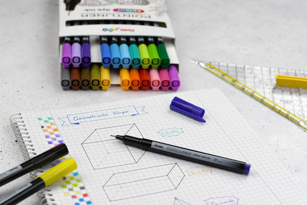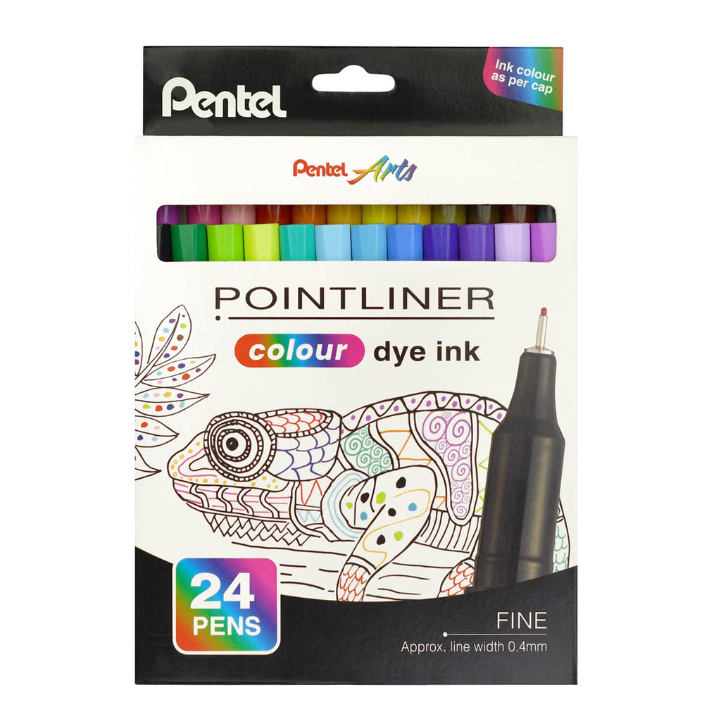 The Pentel Pointliner Colour S40 fineliner pen uses water-based dye ink, making it perfect for accurate writing, proofreading, drawing, and sketching. This set includes 24 vibrant colours, each producing a fine line of about 0.4mm for detailed work. Supplied in a cardboard box, it offers a complete colour range to enhance your creativity.